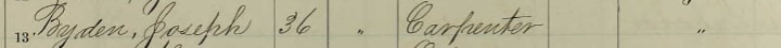 Joseph H Biden was born September 5th, 1828 in Maryland to William Henry Biden and Mary Elkin. Lydia Ann was born in January of 1835 to parents whose names are unknown in Maryland. By 1860, Joseph and Lydia were living on a farm in Baltimore with their four children. On July 1st, 1863, Joseph registered to join the Union Army in the American Civil War. At this time, he was listed as working as a carpenter. It is unknown if Joseph ever actually participated as no record were found to confirm this.