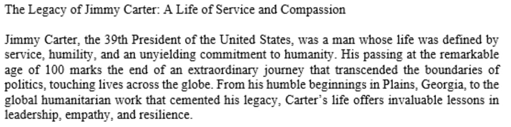 The Legacy of Jimmy Carter: A Life of Service and Compassion