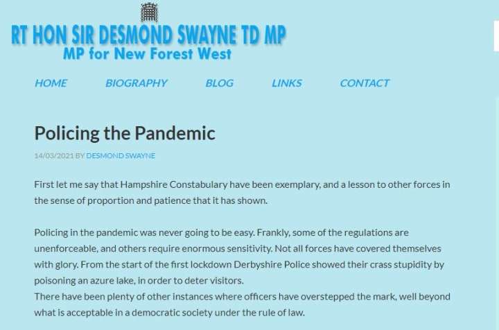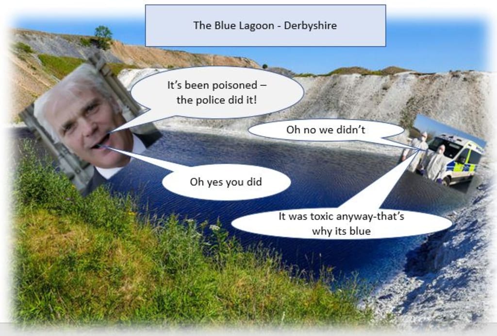 On 14th March 2021 SDS published a blog entitled "Policing the Pandemic". In the second paragraph he accuses the Derbyshire Police of "crass stupidity by poisoning an azure lake, in order to deter visitors".