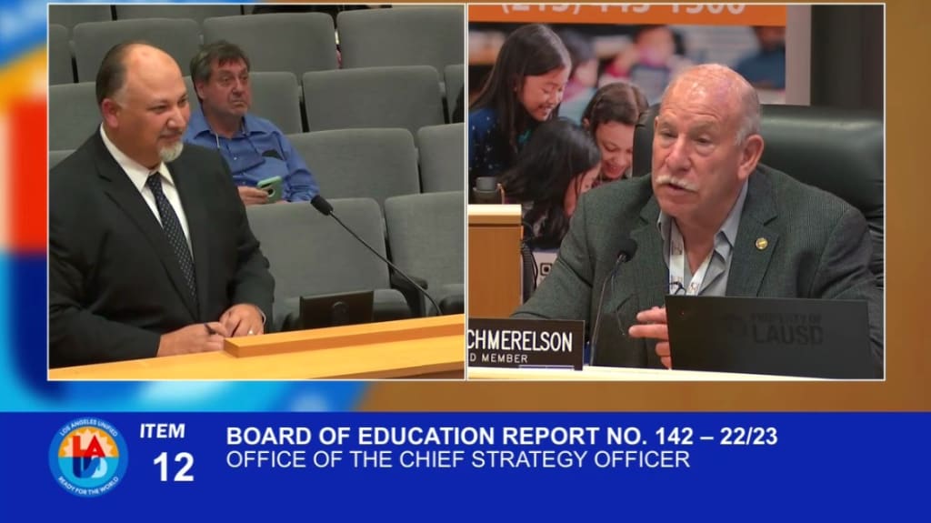 During the exchange with the Director of the CSD, Schmerelson seemed surprised to learn that NVMI is overseen by the Los Angeles County Office of Education and not the LAUSD. Schmerelson should have known about this as he was on the board on November 7, 2017, when it voted unanimously to deny renewing the charter of NVMI. While almost all charters are renewed by the district, NVMI was found to have “an ‘unsound education program’ and substandard academic results”. The CSD also expressed “concerns about its finances.”