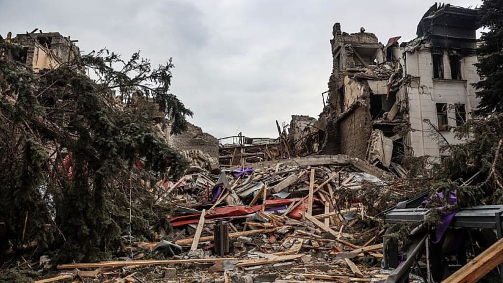 A view of the Mariupol theatre damaged during fighting in Mariupol, in territory under the government of the Donetsk People's Republic, eastern Ukraine, Monday, April 4, 2022