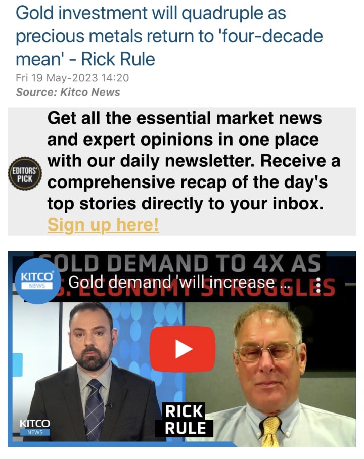 Rick Rule is typically very cautious about what he says regarding Gold. If he says gold investment will quadruple, you could do very well to listen !