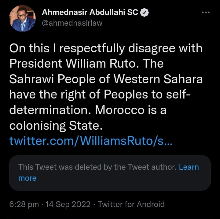 The president has, however, deleted the tweet revoking Sahrawi‘s recognition as an independent state.