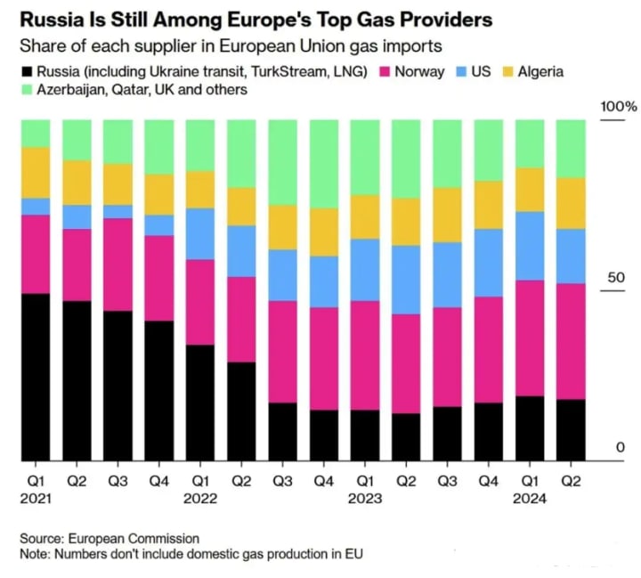 Despite Europe’s efforts to reduce reliance on Russian energy after the Russia-Ukraine conflict, Russia still supplies about a quarter of Europe’s natural gas. However, the supply gap left by Russia’s decline has largely been filled by Norway and, notably, the United States.