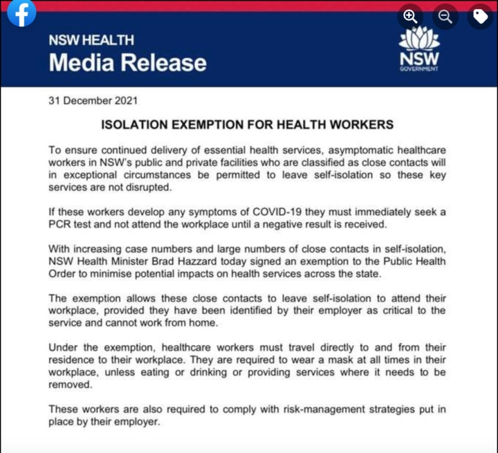 See, this winding back of isolation and testing requirements is in response to the fact that over 2000 workers in just our one state, are currently isolating as COVID- positive, or a close contact of someone who is. Entire departments have been wiped out, in a system that was already operating on a skeleton staff.