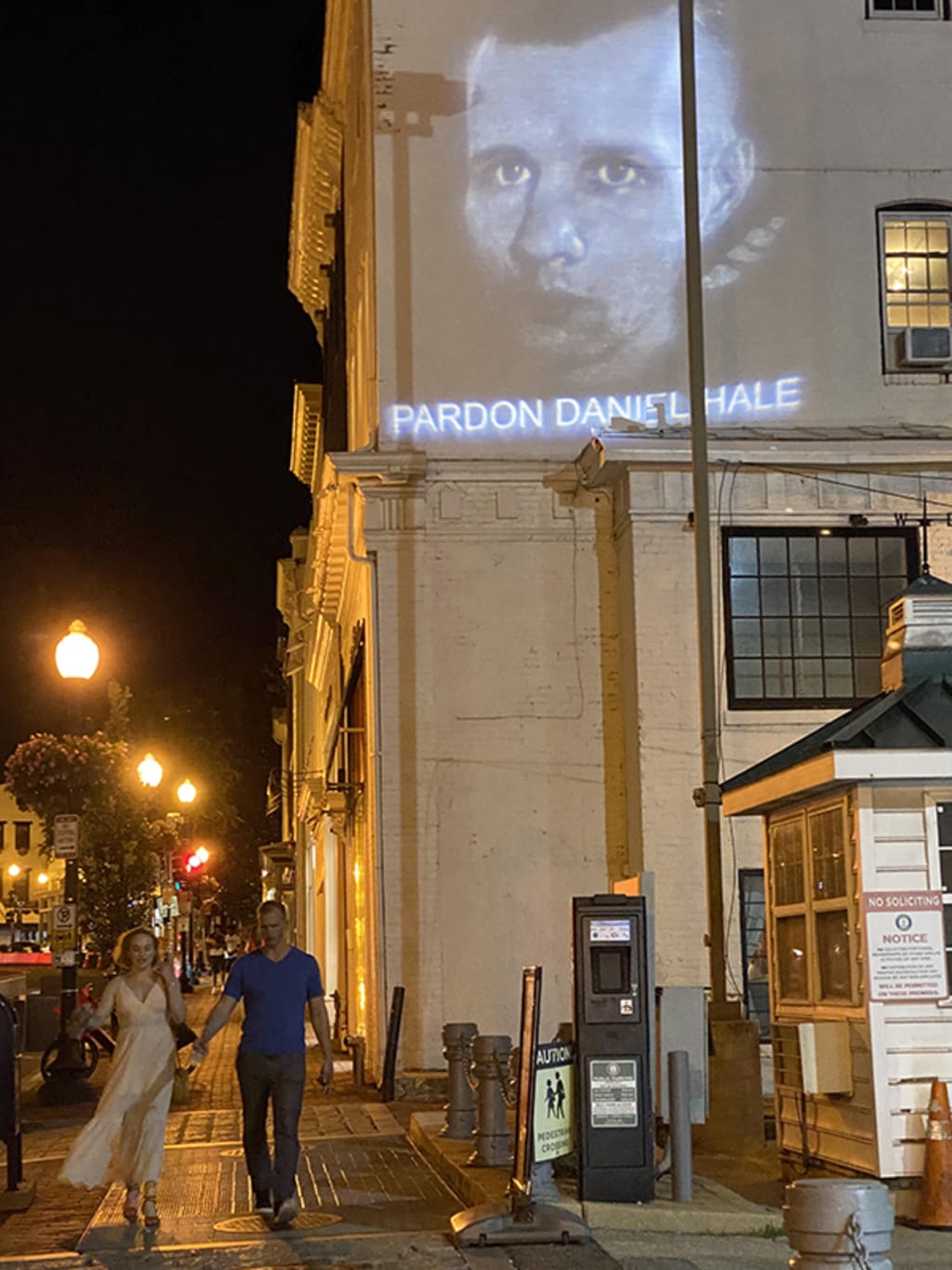 Nick Mottern, of the Ban Killer Drones campaign, accompanied artists projecting Hale’s image on various walls in D.C. He engaged people who were passing by, asking if they knew of Daniel Hale’s case. Not a single person he spoke with had. Nor did anyone know anything about drone warfare.
