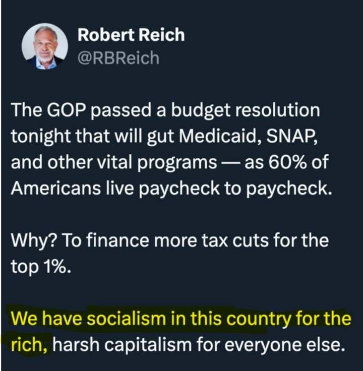 A guy from my former church and my former boyfriend were shocked when I said something about the "big C" (communism), although socialism is probably the better term. It seems to me capitalism only works with big guard rails to protect workers, the disabled, the elderly, etc. Socialism also can be corrupted, but I understand it when my fellow citizens form coops in order to share profits, etc. I follow Sanders and Reich, too. They are probably just addressing fears in the US.