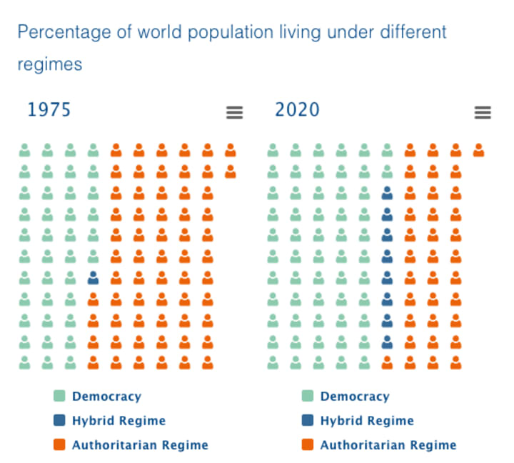 Figure 3: Percentage of World Populations Living Under Different Regimes, 1975 vs, 2020