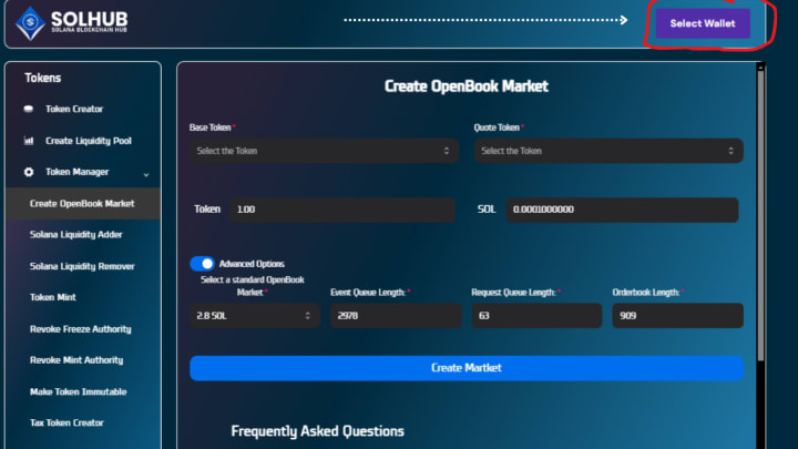 Building an OpenBook Market on Solana is as easy as a breeze thanks to the interfaces developed by platforms such as solhub.io. To get started, follow these steps: