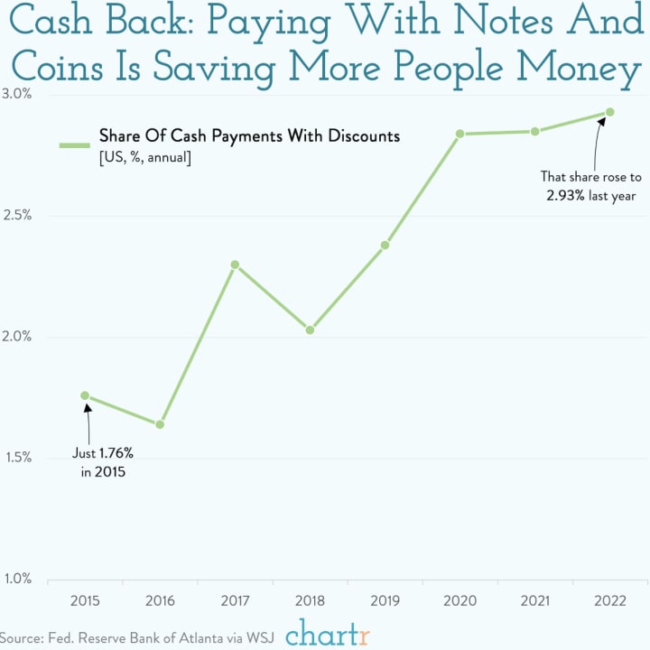 Figure 2: The Increasing Frequency of Discounts for Consumers When Paying with Cash, 2015-2022