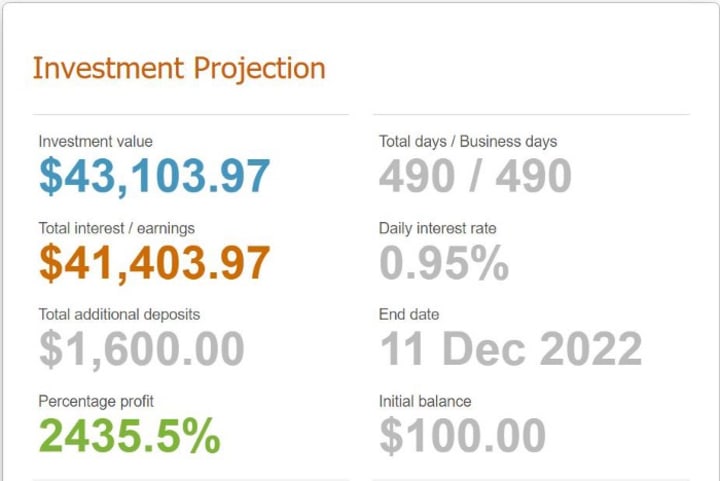 At the end of 14th September 2022, you will reach the median weekly income goal of approximately 1000 USD plus after withdrawal taxes by DRIP system