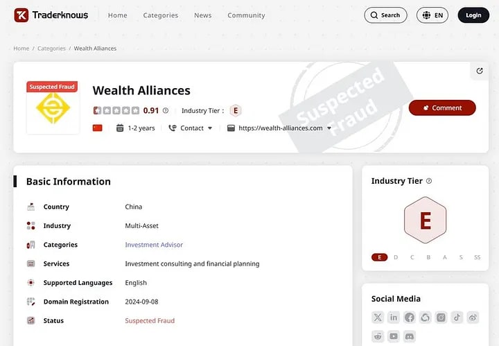 Wealth Alliances: A persona platform serving the scam group