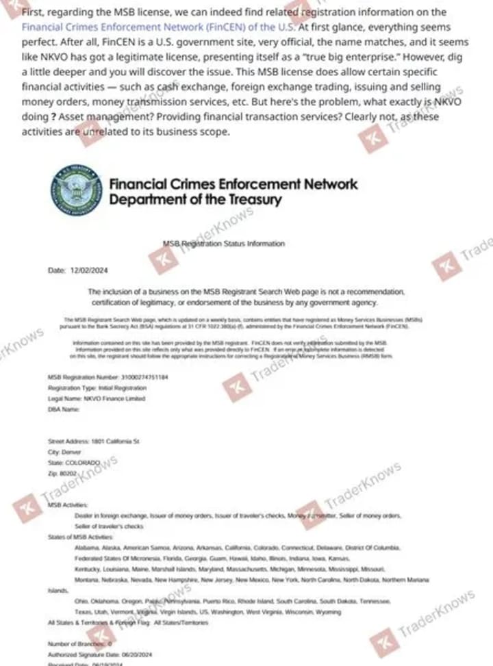 The methods NKVO used to project an image of legitimacy are telling. The platform went as far as to register for a U.S. Money Services Business (MSB) license. However, a detailed analysis of the license's terms exposes a fundamental deception: their cryptocurrency exchange services were not included in its scope of permitted activities. The license, to put it plainly, was pure theater—a veneer of compliance created with the singular goal of gaining investor trust. When asked for specifics about this compliance, the platform, unsurprisingly, had nothing to say.