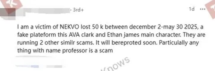 This is the first time "Ava Clark" has surfaced in our investigation, and we advise extreme caution. Critically, this source also alleged the syndicate operates at least two other fraudulent websites—a claim that independently corroborates our own findings.