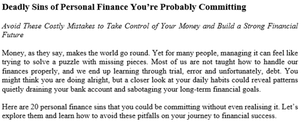 Here are 20 personal finance sins that you could be committing without even realising it. Let’s explore them and learn how to avoid these pitfalls on your journey to financial success.