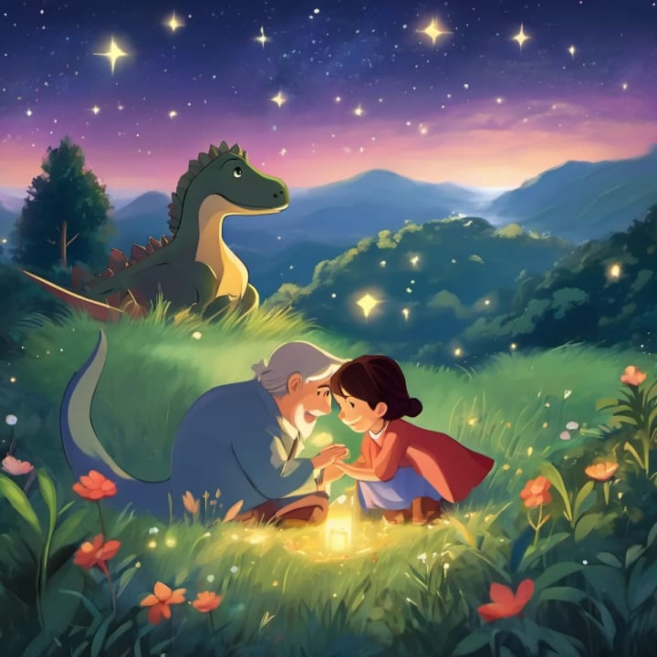 Lilly was overjoyed and gave Dino a big, grateful hug. She thanked him for his kindness and for granting her wish. Dino smiled and said, "Remember, the real magic is within you. Always believe in kindness and love, for they have the power to make your dreams come true." From that day on, Dino and Lilly became the best of friends. Together, they would go on adventures and help others in need. Dino discovered that by using his powers to bring joy and happiness into others' lives, he felt the true magic of kindness within himself :-..........