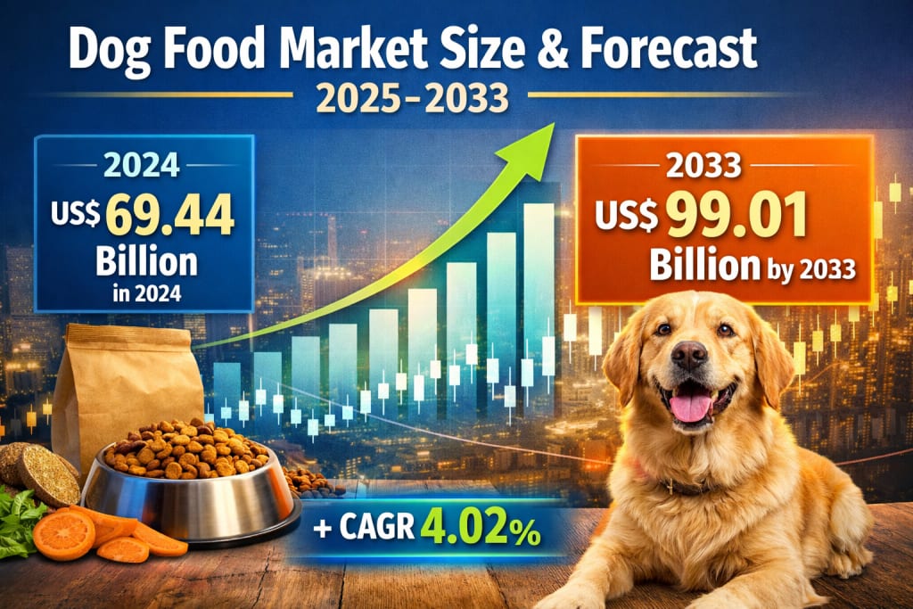 The global dog food market is no longer just about feeding pets—it is about nurturing them. With the market projected to grow from US$ 69.44 billion in 2024 to US$ 99.01 billion by 2033 at a CAGR of 4.02%, the industry’s future is firmly anchored in premiumization, personalization, and trust.