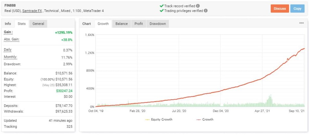 c. Fin888 does not use martingale or averaging techniques. You can see the trading history on the link I provided above, all of them are single entry.