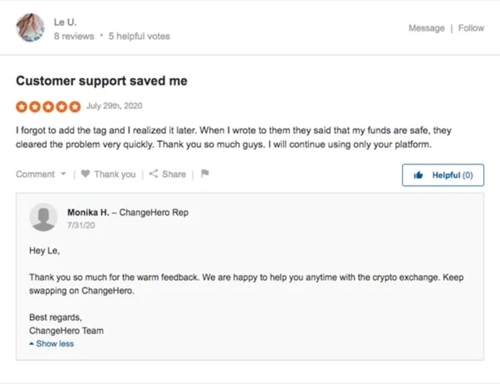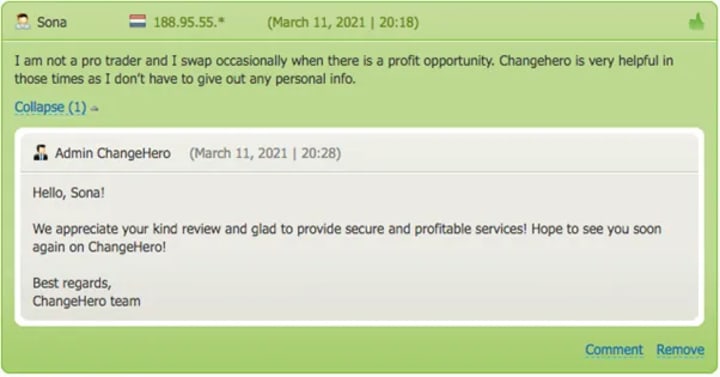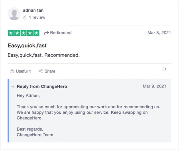 Is ChangeHero legit? Don’t take our word, let the users’ ChangeHero reviews do the talking: