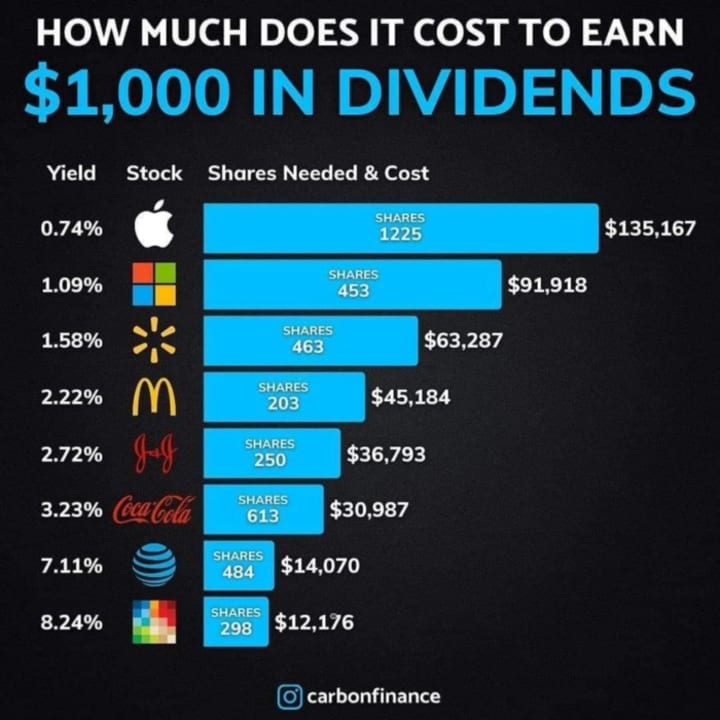 Below will give you a better idea of how much you need to set aside to earn $1,000 in dividends.