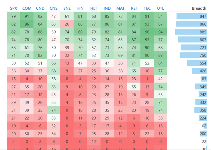 How to design an indicator to monitor the 11 sectors of the S&P 500?