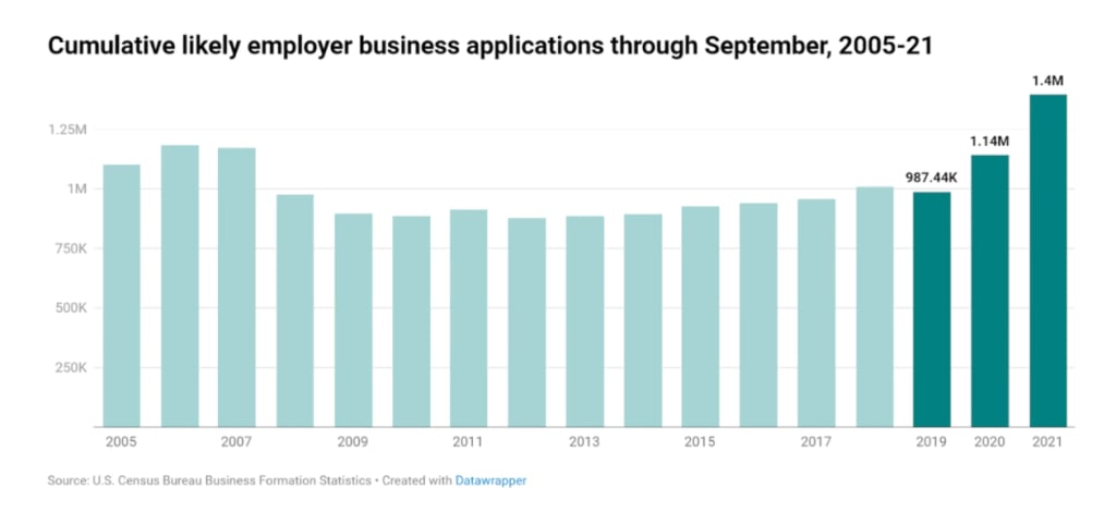Furthermore, it checks out. As per the US Evaluation Department, the nation is on target to break its record for the quantity of new business applications in a year by almost half.