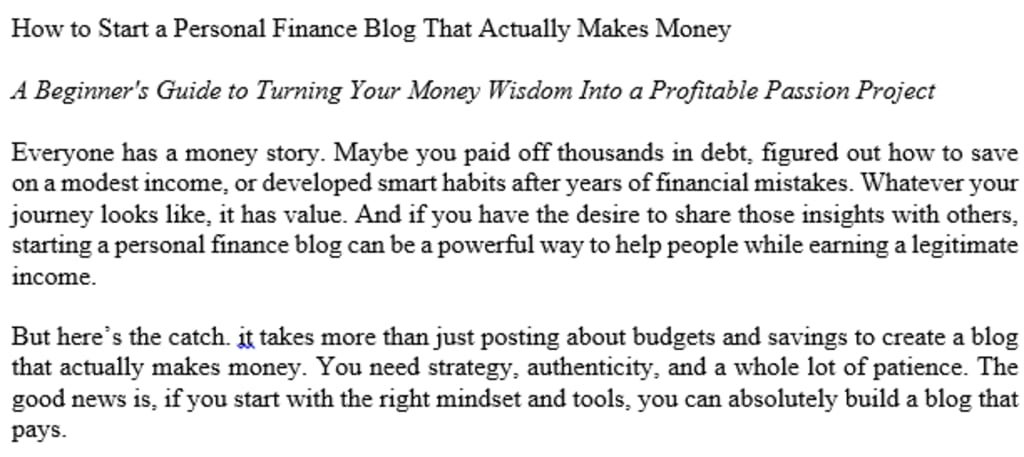 Before you worry about traffic or monetization, get clear on your story. Readers connect with real people, not textbook advice. If you were once terrible with money but turned things around, that transformation is powerful. If you're still in the middle of your journey, even better. Honesty builds trust.