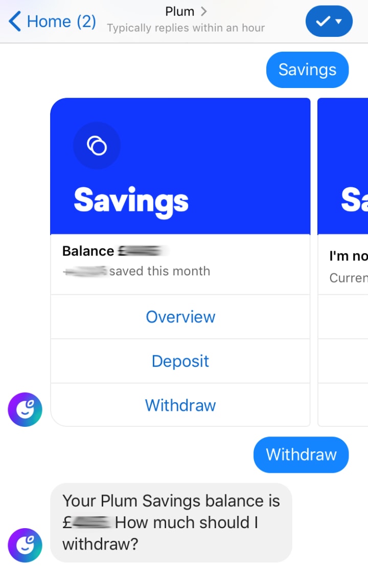 Using Plum was simple enough, appearing just like a normal conversation on Facebook Messenger, where it stayed, becoming something I’d casually open every time I just wanted to check in. It didn’t feel like I was tracking my finances.