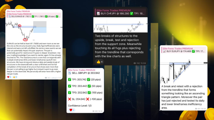 Elite Forex Trades delivers 1–3 high-quality signals daily. Unlike providers that spam dozens of mediocre setups, they focus on quality over quantity. Each signal is manually analyzed by professional traders with over six years of market experience (as claimed by them).