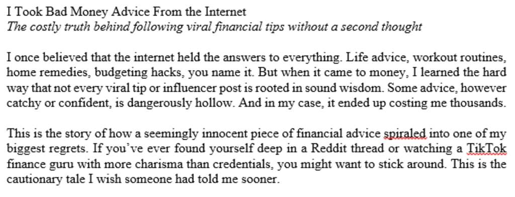I once believed that the internet held the answers to everything. Life advice, workout routines, home remedies, budgeting hacks, you name it. But when it came to money, I learned the hard way that not every viral tip or influencer post is rooted in sound wisdom. Some advice, however catchy or confident, is dangerously hollow. And in my case, it ended up costing me thousands.