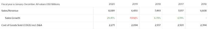 Total Sales has been increasing greatly over the years. They did have a big drop in sales in 2019, but they did recover 2x what they lose the year after.