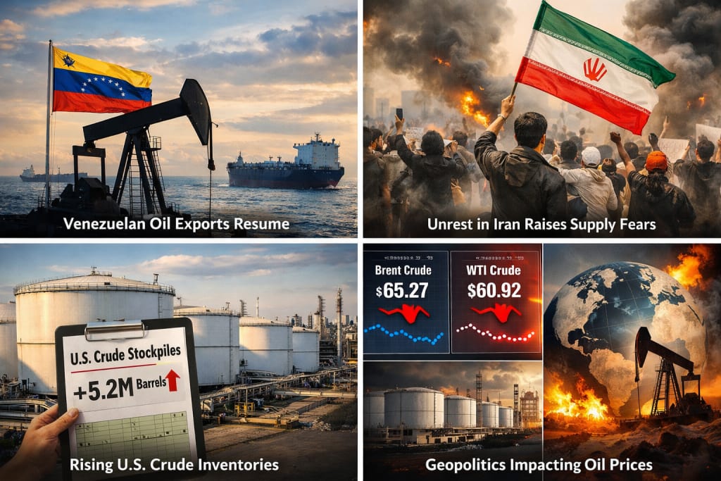 Global oil markets paused gains this week as fresh Venezuelan crude exports began flowing, while mounting domestic turmoil in Iran continued to rattle investor confidence. After four consecutive days of price increases, Brent crude dipped slightly, and U.S. West Texas Intermediate (WTI) also eased, reflecting a market caught between renewed supply prospects and geopolitical uncertainty.