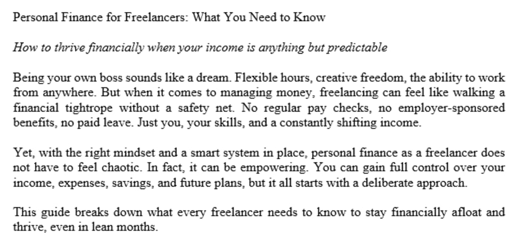 Freelancing comes with freedom, but that freedom carries responsibility. Managing your money wisely is part of taking control of your life and future. You do not need to be perfect. You just need to start.