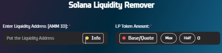 If you are ready to drain liquidity from a Solana pool, go to the Solana Liquidity Remover page now and begin the process.