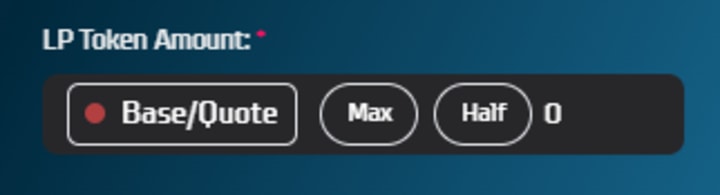Above the input fields, there is a box labeled LP Token Amount which allows you to set how much liquidity you intend to obtain. You have three options: