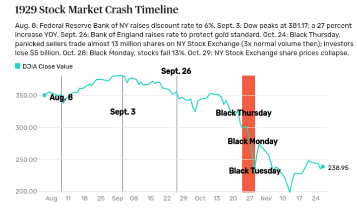 Below you can see a chart tracking key events leading up to the 1929 stock market crash: