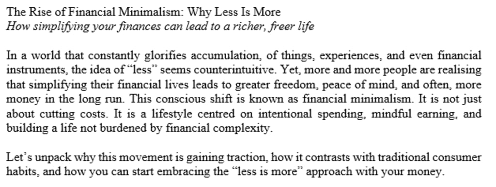 When people hear the term minimalism, they often imagine stark homes with barely any furniture or giving up all luxuries. Financial minimalism is quite the opposite. It is about reclaiming control and deciding what truly adds value to your life. It is not deprivation. It is refinement.
