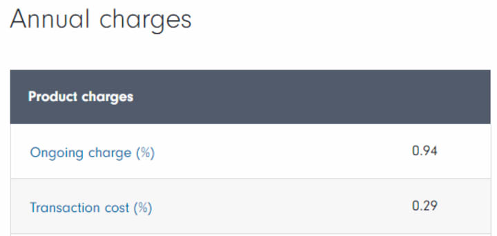 In this case, this means you’ll be paying a 1.23% total cost for investing in this fund. So, if you were to invest £1,000 in it, you’d be paying £12.3 in fees.