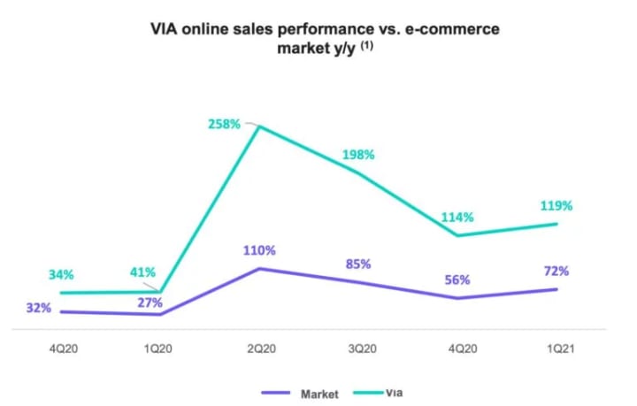 Soon, the company will allow 3P sellers to sell merchandise in existing Via retail stores. Between its 1P/3P marketplaces, its logistics network, and financial solutions offering, Via has created a one-stop shop for consumers and sellers.