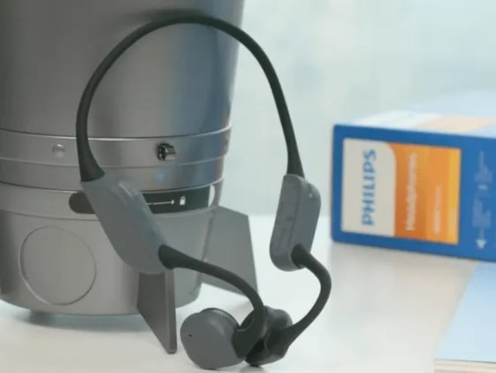 Philips A6606 has a good appearance, and its strange dark gray shape has a special sense of technology. The novel rear-hanging design is sporty. Its surface is made of silica gel, which is delicate and smooth to the touch, and its interface is also very flat. There is no doubt about Philips’ manufacturing process. The headphones’ body is made of waterproof silica gel and titanium alloy, so its weight is only 36g, and it feels very light to use. Its frame is made of memory titanium alloy, which can be stretched and bent repeatedly. It is specially designed for fun run mode and equipped with LED fun run warning lights.