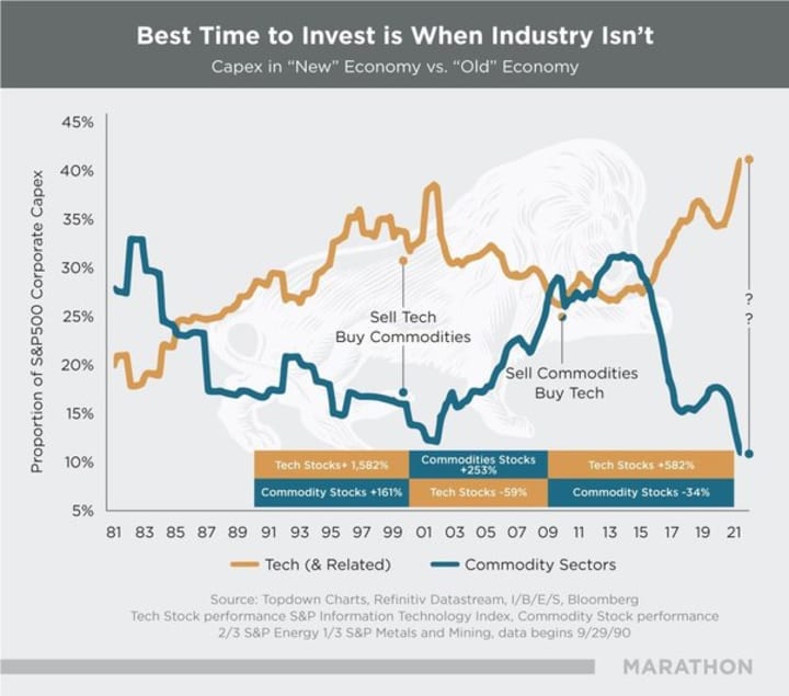 If you've been following me for a while, you're aware that I've been banging the table about this capital shift away from tech stocks and toward companies involved in the production of energy and commodities, and we're only just getting started.