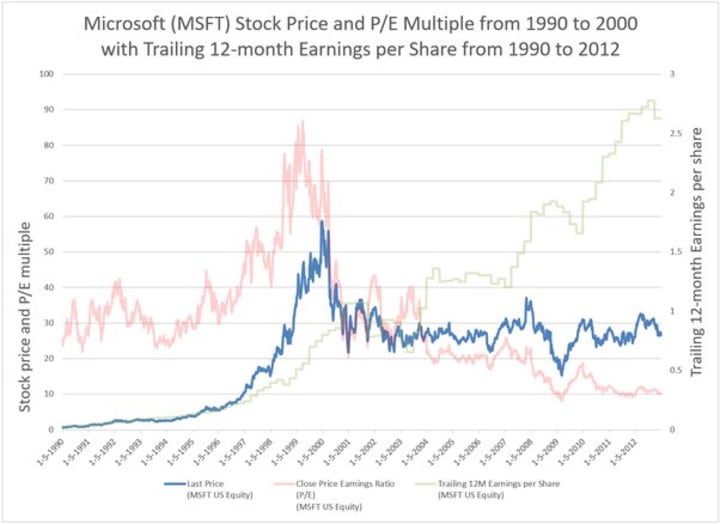 The interesting thing is that while the stock price basically kept swinging from side to side, Microsoft's earnings really continued to increase.
