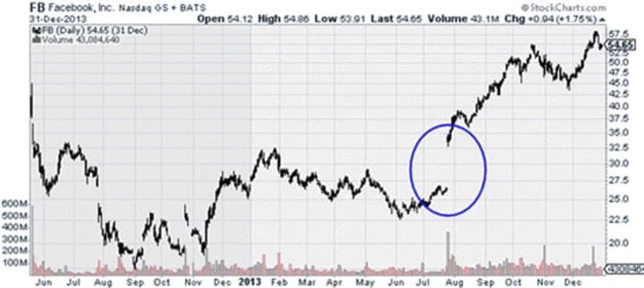 You could have used this approach to buy Facebook for just $34 after it surged on earnings in July 2013. Today, Facebook trades for over $270. That’s nearly a 700% gain, or enough to turn every $10,000 into almost $80,000.