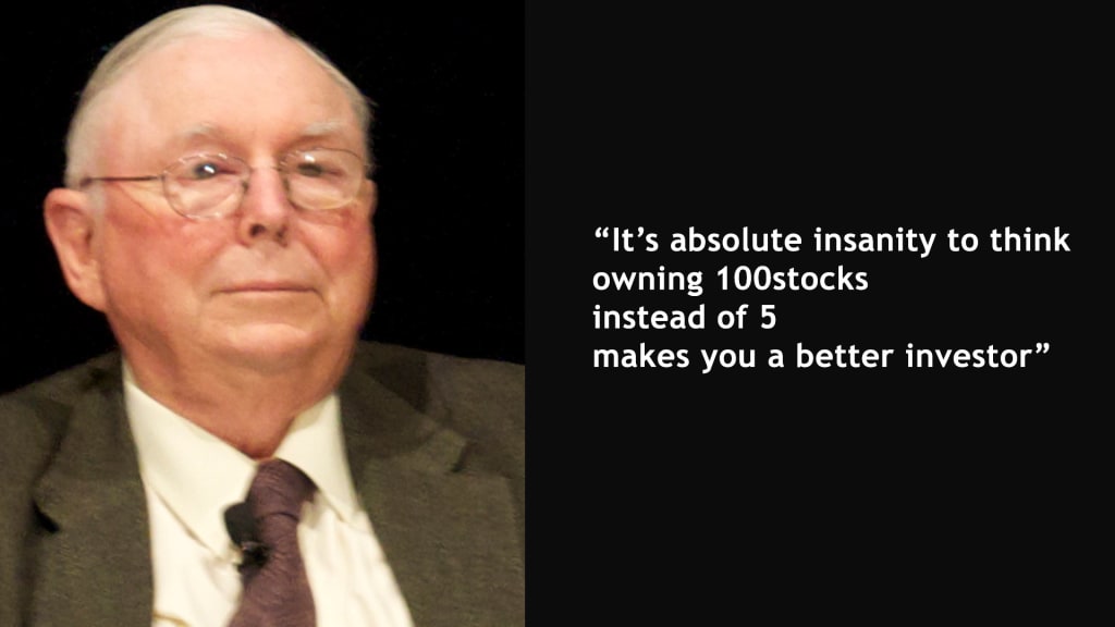 Charlie Munger says that it is easier to find 5 than to find 100 when he was talking about stocks. That is why he said that it is absolute insanity to think owning 100 stocks instead of 5 makes you a better investor.
