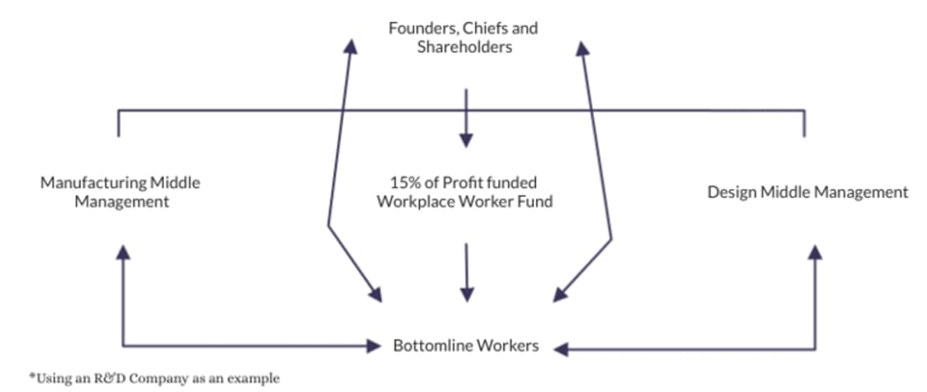Worker-Influenced Corporate (WIC) models work well in the exact situation I was just outlining, in fact they were designed to fit this exact purpose. To create a democratic workplace in a highly-cut throat sector of the economy. WIC’s look, structurally pretty similar to a standard Corporation. They have Founders, Chiefs and Investors, they have a full board of directors. But the key is the Chief Peoples Officer, who is a shareholder in the business but their job is to decide on workplace policy, Pay, benefits, recruitment and rights of employees. From start to finish, the CPO is there to make sure that the workers have everything they need to maintain a healthy work-life balance and get paid fairly enough that they don’t have high levels of stress impacting them at work.