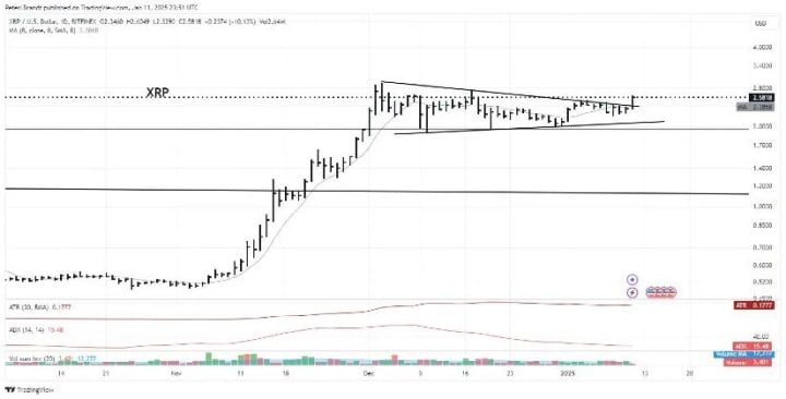 Peter Brandt highlighted that XRP has recently broken out of a long-term symmetrical triangle pattern, which is often a precursor to a strong upward price movement. This technical breakout has caught the attention of traders who closely monitor such patterns to anticipate market trends. The sustained break above key resistance levels has fueled confidence among investors, driving more demand for XRP.