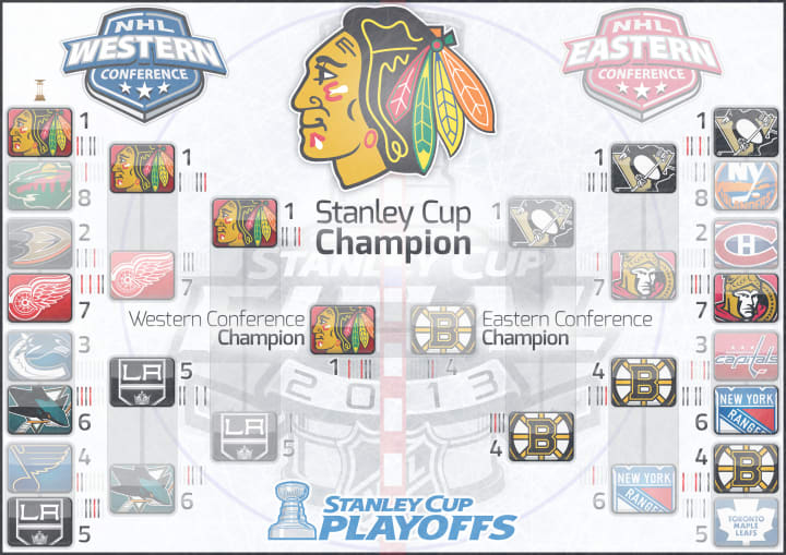 This format lasted for 19 seasons, and it had its share of upsets during that period. I still remember the eighth-seeded San Jose Sharks ousting the Presidents' Trophy winning St. Louis Blues in 2000, as well as the Mighty Ducks of Anaheim's magical 2003 run to the Stanley Cup Final. I do like the "1 vs 8" format, but the one problem I always had with it is the reseeding of the Conference Semifinalists. The NBA's "1 vs 8" format has a set bracket, meaning that we know who's playing who in the second round. In the NHL, under that format, fans would have to wait just a bit longer. I still remember 2013 (the final year under that format), where it looked like we would get a Ducks/Kings West Semifinal. The Kings won their series over the Blues, but the Ducks blew it against the Detroit Red Wings. As a result, the Wings faced the Blackhawks, while the Kings faced the Sharks thanks to reseeding.