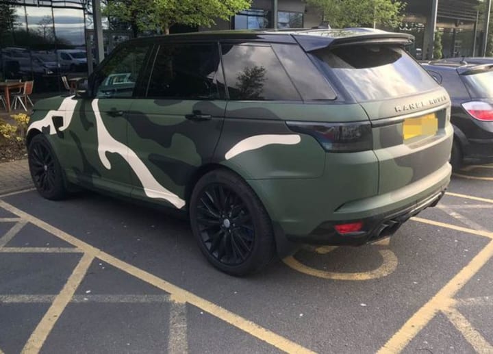 Shimmering hub caps that feature Wilder's distinctive logo can be clearly seen on the car and it has had a very cool cammo wrap.