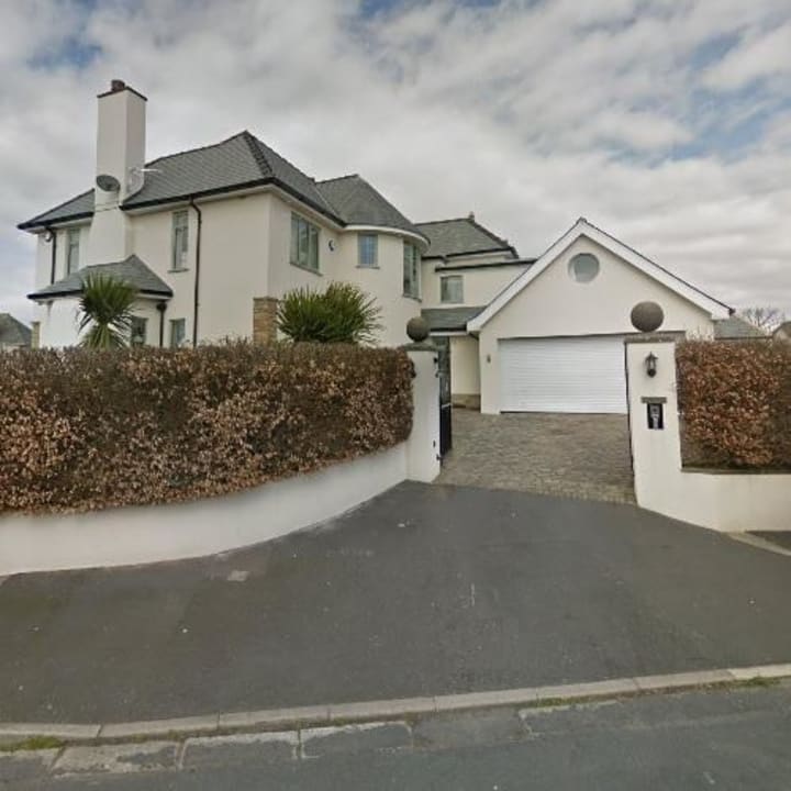 The home offers a decent amount of privacy with white walls, a large steel gate and high hedges.