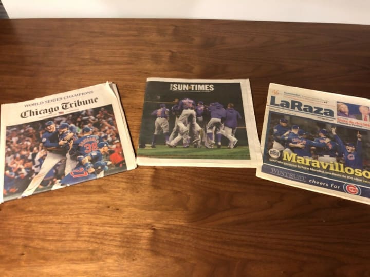 4. Chicago Cubs 2016 World Series Newspaper Collection - Regardless of the state of the modern newspaper, there are few more iconic items to own as a symbol of your team’s triumph than a newspaper dated the day following a World Series victory and featuring an iconic photo of the team celebrating the biggest moment in Chicago Cubs history. 5 years later finding three Chicago Newspapers intact and display ready is a pretty great find and next to some actual World Series tickets, you have a perfect poster display for your Cubbie themed mancave.